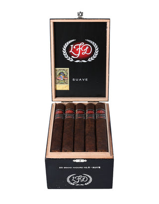 The La Flor Dominicana (LFD) Suave Grand Maduro No. 5 (Toro) delivers a mild-to-medium profile that highlights LFD’s softer, more approachable side. Wrapped in a rich Connecticut Broadleaf Maduro leaf over a Dominican binder and Dominican fillers, this Toro opens with smooth notes of leather, toasted nuts, black pepper, and gentle earthiness. The profile is mellow yet layered, offering satisfying flavor without heavy strength—ideal for smokers who enjoy creamy complexity and relaxed character.